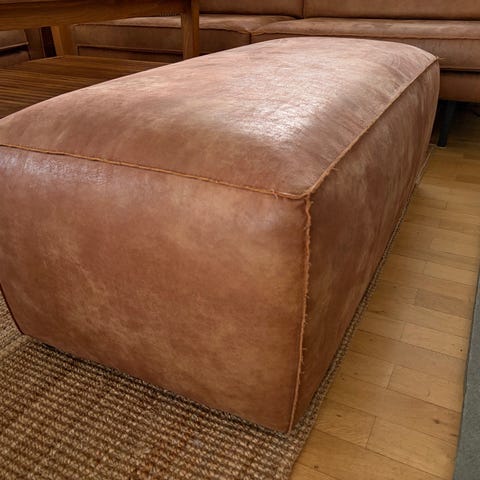 Meget pent brukt puff fra Home and cottage. Den er romslig i nydelig mørkegrå / blågråfarge i fløyel. Den har sorte lakkerte bein.Den har stått til pynt og hatt pledd på seg for å holde på fargen. Behagelig å sitte på. Dyrefritt hjem.