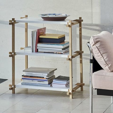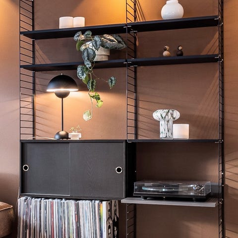 I fargen eik. Den er lite brukt. Kun hengt på veggen et par måneder. Den ene hylleplaten kom med en sprekk fra leverandør, men det har ingen betydning for bruken og er heller ikke synlig når hyllen henger på veggen. Se bilder