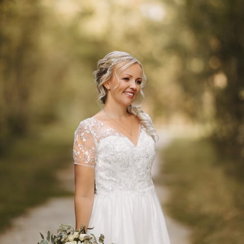 Selger DRØMMEKJOLEN min inkl. slør, hoopskirt (underskjørt med ring som får kjolen til å holde fasongen og strutte) + glitterbånd og tiara 🤍