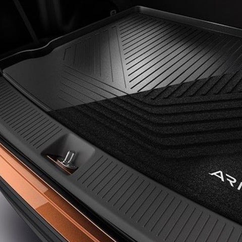 Toyota bagasjeromsmatte . Matten er formtilpasset og har opphøyde kanter for å holde smuss og fukt på plass. Overflaten har mønster som gir bedre friksjon for å hindre at gjenstander sklir i bagasjerommet.
