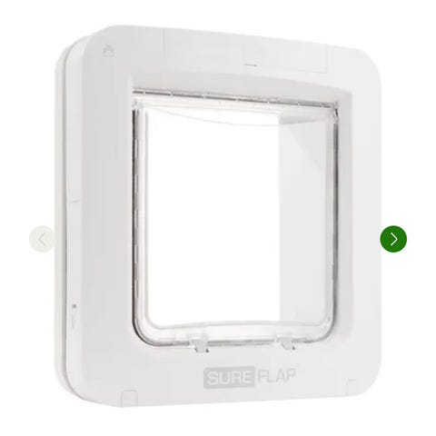 SureFlap Mikrochip Katteluke Connect er en elektronisk katteluke som leser kattens mikrochip for å styre tilgang gjennom døren. Produktet er beregnet for katter og kan kobles til en app for overvåking og innstillinger.