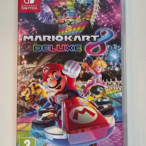 Nintendo Mario Kart 8 Deluxe spill for Nintendo Switch. Fysisk spillkassett i eske. Sjanger: racingspill med flerspillermodus lokalt og online. Aldersmerking PEGI 3. Støtter spill med Joy-Con-kontrollere og Nintendo Switch Pro Controller.
