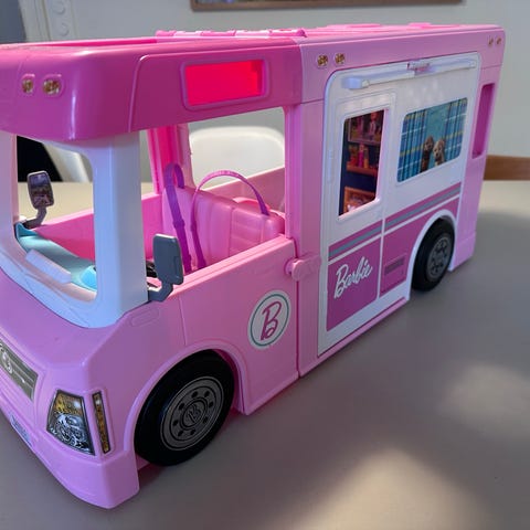 Settet består av et toetasjes hus med terrasse, basseng med sklie og utvendig trapp. Inne i huset er det innredning som senger, bord, stoler og baderom.