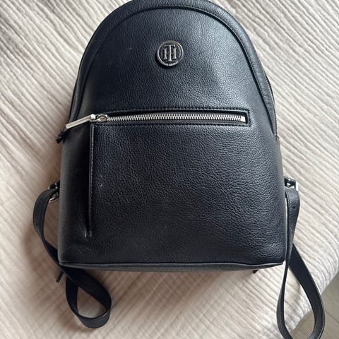 Tommy Hilfiger ryggsekk for dame i kunstlær. Sekken har helprintet TH-mønster i beige og lyse toner, med kontrastdetaljer og stropper i brunt. Den lukkes med klaff og glidelås, og har en utvendig glidelåslomme på forsiden. På baksiden er det justerbare skulderstropper i tekstil samt bærehank øverst. Innvendig hovedrom med glidelåslukking og plass til nødvendigheter til hverdagsbruk. Egnet som hverdagssekk eller til lett bruk i fritiden.