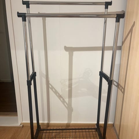 Pent brukt stativ til å henge klær, kan brukes i garderobe, soverom, entre eller vaskerom. Kun brukt 1/2 år, ingen stygge merker.