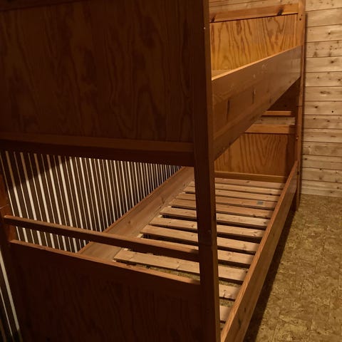 Køyeseng, 120 cm nede, 75 cm oppe. Heltre. God kvalitet. Har vært gjesteseng. Sjelden brukt. Gode madrssser. Madrassen nede har avtagbart trekk som kan vaskes. Det har ikke den oppe.