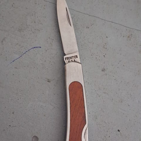 Liten lommekniv / foldekniv, med 3D bilde på skaft. Vet ikke merke, noe gammel er den men husker ikke eksakt når jeg fikk denne.