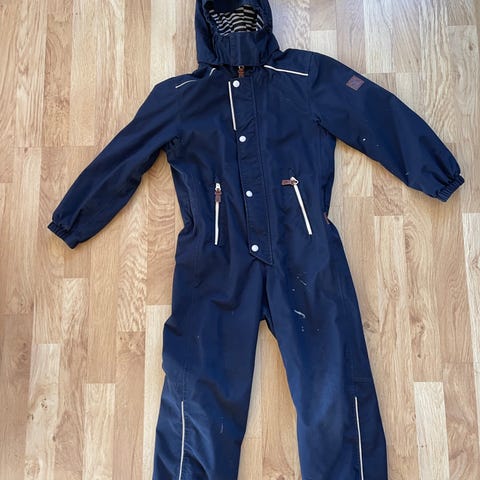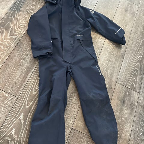 Mye bruk igjen. Se bilder for detaljer. Ingen hull. Fotstrikker intakt. Slitasjen er størst på ermene.