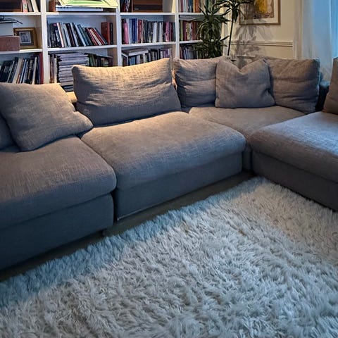 Dette er en god sofa du både kan sitte godt i men også en sofa du kan trekke bena oppi eller slenge deg nedpå..