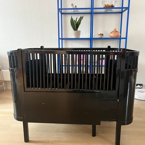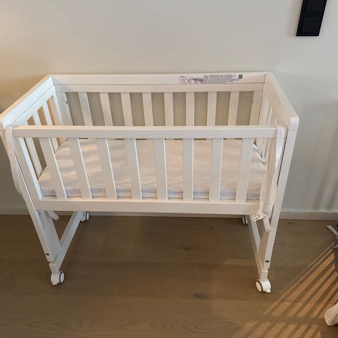 Omtrent ikke brukt da barnet har sovet i senga med mor. Er en bleket flekk på bunnplata, usikker om det kommer fra en våt bleie eller flaske. Uansett ingenting å si på kvalitet/funksjonalitet. Ser ellers strøken ut.