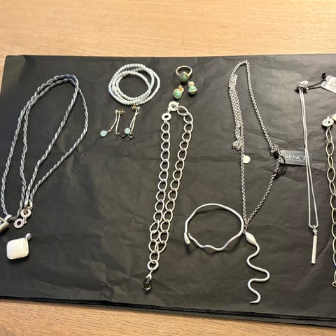Ubrukte smykker av ymse slag. Kjeder og armbånd.