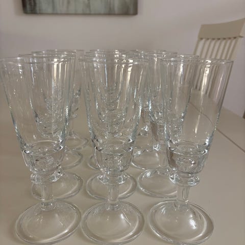 Hadeland Glassverk vinglass i klart glass. Klassisk form med stett og fot. Selges samlet, totalt 12 glass.
