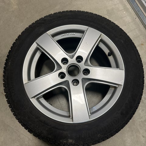 Et sett komplett piggfrie continental vinter hjul på stål felg med kapsler og bolter.(1800 kr)