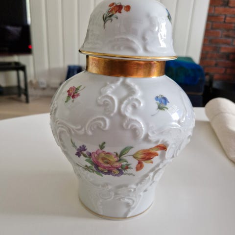 Håndlaget potpurrikrukke fra KM Royal Bavaria, Germany selges for 600,-