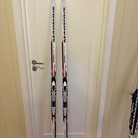 Det har skallet av en liten bit på bakenden av den ene skien, men dette er kun kosmetisk (se siste bilde). Sålen har noen få små riper som vil bli borte om man sliper skiene (disse er aldri slipt tidligere).