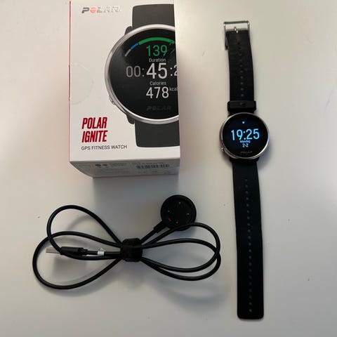 Garmin Vivoactive 4S. Medfølger ikke originalrem, men en rem kjøpt på teknikkdeler. Det er denne som er avbildet.