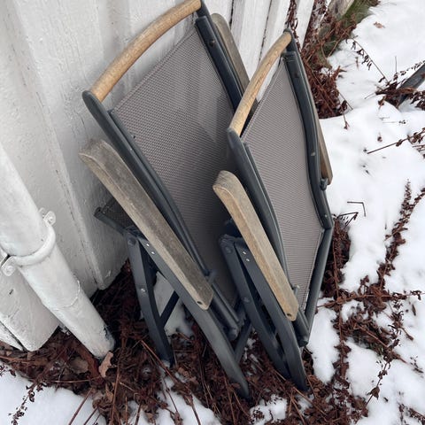 Puter til utestoler. 4 stk. Vi har ikke stolene lenger derfor gis de bort mot henting. Må hentes søndag 8/2