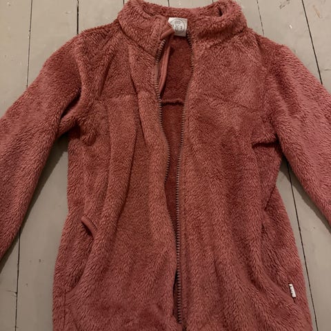 Pent og lite brukt morgenkåpe i str. 134/140 selges kr 200,-. Den er rosa med hvite hjerter og har lommer og hette.