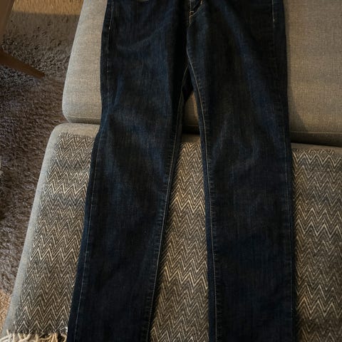 Er lite brukt. Mørke blå og slim me strech.