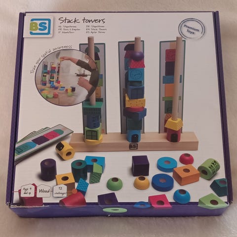 Hasbro Jenga tårnspill i plast med klosser i oransje og grå farge. Spillet består av en base og rektangulære klosser som stables til et tårn. Spillerne fjerner og flytter klosser etter tur uten at tårnet faller. Egnet som familiespill og gruppespill for barn fra 6 år og voksne. Laget i plastmateriale som tåler gjentatt bruk. Uten eske, pakket i zip pose