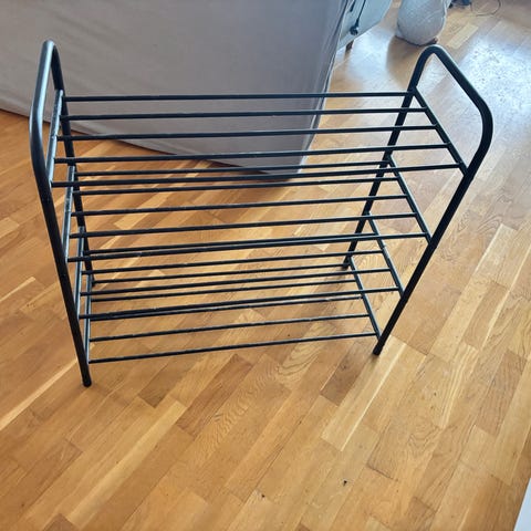 Pent brukt skohylle.