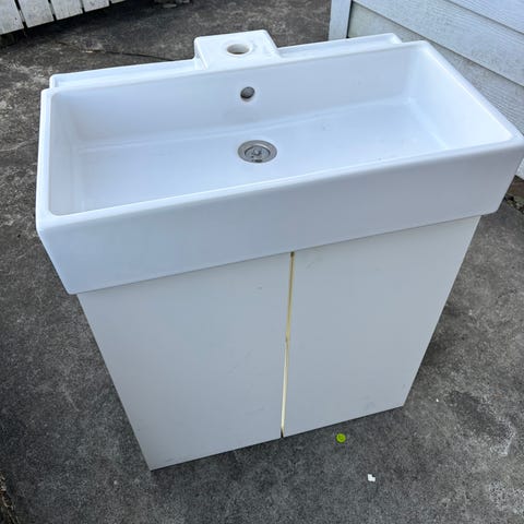 Begge skapene er laget i plate-/trebasert materiale med glatt overflate som er enkel å tørke av. Passer til bruk på bad eller vaskerom der det er behov for ekstra oppbevaringsplass.