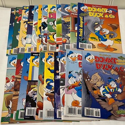 30 blader og 1 bilag fra 2015 (68.årgang) av Donald Duck & Co. selges. Nummerene er; 6, 7, 8, 9, 11, 12, 13, 14 (m/bilag), 15, 17, 18, 20, 21, 22, 23, 24, 25, 29, 30, 31, 33, 34, 35, 36, 37, 38, 41, 43, 44 og 45. Må hentes, sender ikke.