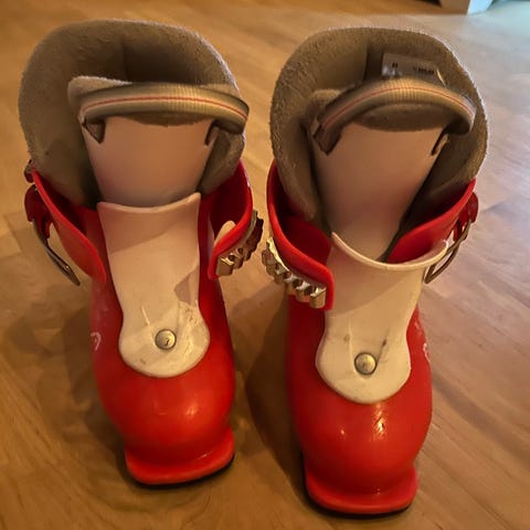 Head barneskistøvler i rødt med hvite detaljer. Str 220-225 (35-36)