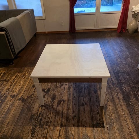 Godt brukt bord med synlige merker.