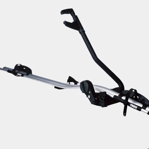 2stk thule (proride?) takmontert sykkelstativ i aluminium med plastdetaljer. Stativet har skinne for sykkelhjul og justerbare fester for ramme og hjul. Festes på eksisterende takstativ/bøyler (T-Spor) på bilen. Egnet for transport av sykkel på biltak.