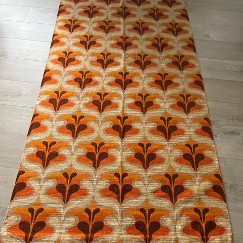 Vintage Stoff med marihønemønster blå og oransje ca. 140 cm bredde