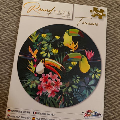 Puslespillet er komplett. Puslet to ganger. Diameter på ferdig puslet puslespill er ca. 68cm.