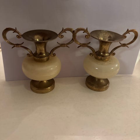 2 Vintage håndlagde Porselens vaser fra PMP. Selges 500, - pr stk.