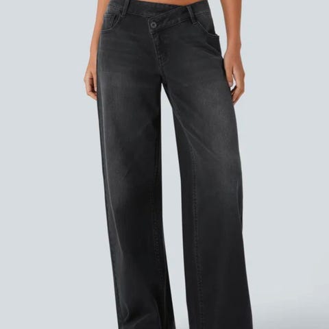 Halara Flex™ High Waisted Pockets Baggy Wide Leg Washed Casual Jeans