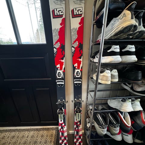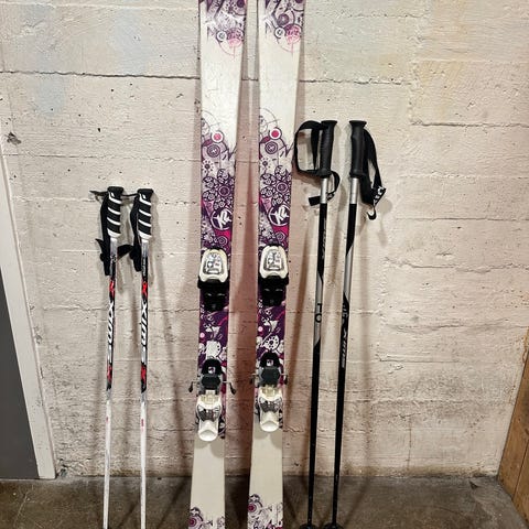 K2 twintip alpinski med bindinger i svart og oransje design. Skiene har tvillingtupp som gjør dem egnet til kjøring både forover og bakover, for eksempel i park eller variert alpinbruk. Undersiden har markert K2-logo i kontrastfarger. Bindingene er montert på skiene. Egner seg for alpint og frikjøring i bakke. 109 cm