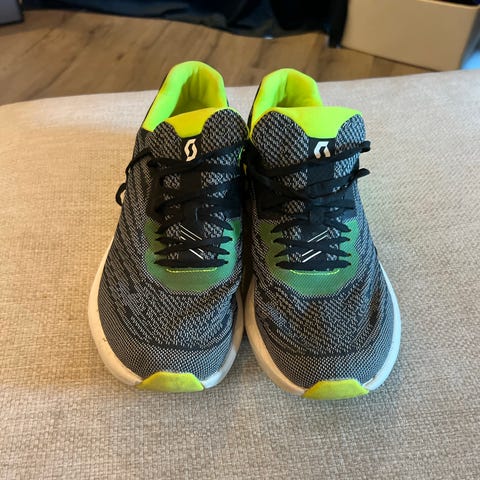 Salomon Speedcross terrengløpesko i størrelse 42. Skoene er svarte med gule detaljer og har grov yttersåle med kraftig mønster for godt grep på variert underlag. Overdelen er i syntetisk materiale og tekstil med hurtigsnøring for enkel tilpasning. Egnet til tur og fottur i terreng og på sti.