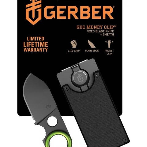 Fox Knives foldekniv. Kniven leveres i original eske, med svart etui med glidelås og lys stoffpose med snøring, alle merket med Fox-logo.