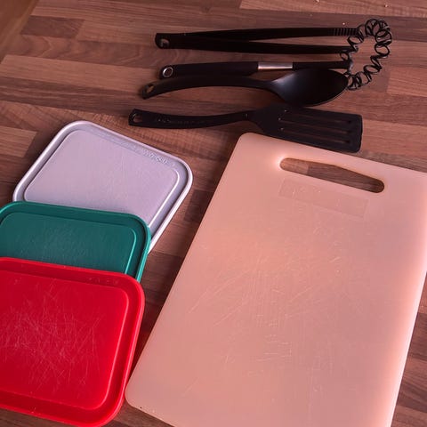 Sett med tre kjeler uten håndtak fra Tefal. Kjelene har non-stick belegg på innsiden og er egnet til baking av kaker, brød og andre ovnsretter. De gis bort grunnet at belegget har begynt å skrape opp. Formene er i tre ulike diametere som kan stables i hverandre for enkel oppbevaring.
