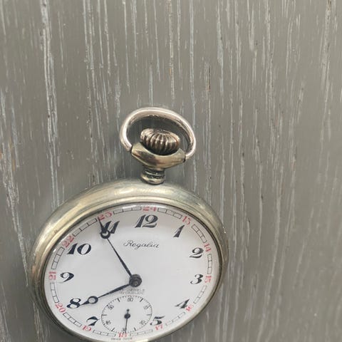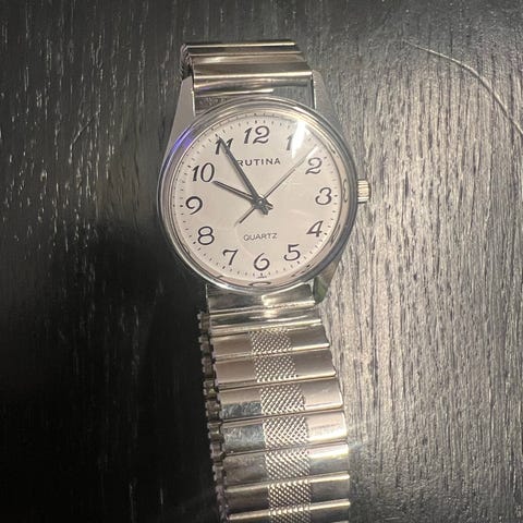 Amidor mekanisk klokke, tikker og går, service historikken er ukjent, selges for 600