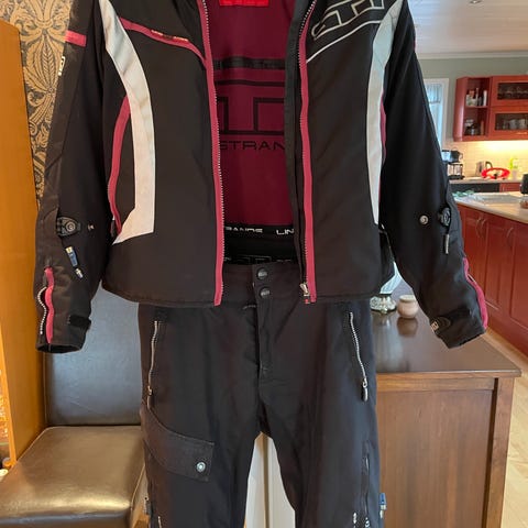3 år gammel ubetydelig brukt Lindstrands STR MC-jakke i skinn for dame. Jakken er hovedsakelig svart med gule og grå refleksdetaljer foran, bak og på ermene for bedre synlighet. Modellen har høy krage med trykknapp, glidelås i front og glidelåslommer i sidene. Ermene har glidelås og justeringsmuligheter ved håndleddene. Innvendig er jakken helfôret med meshfôr og har innvendige lommer. Jakken er utformet som en tettsittende motorsykkeljakke med forsterkninger og polstring på skuldre og albuer. Egnet til bruk på motorsykkel og annen MC-kjøring der man ønsker en skinnjakke med synlige kontrastfelt.