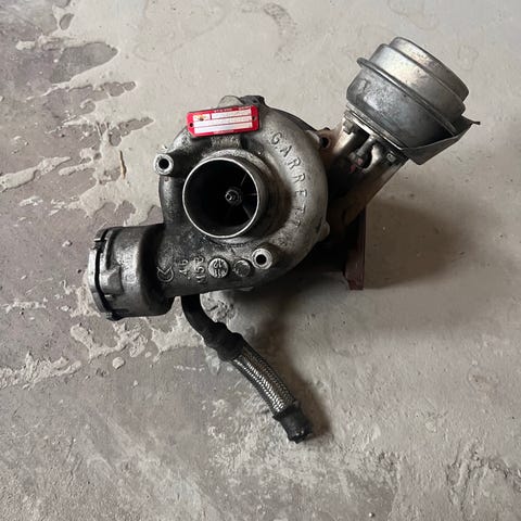 Garrett turboaggregat til bilmotor. Enheten består av turbinhus, kompressorhus og integrert wastegate/aktuator. Passer til motor med passende eksosflens som vist på bildene. Egnet som erstatningsdel eller til prosjekt der det trengs et turboaggregat av denne typen. Sittet på en Audi a6 1.9 tdi. Kan sikkert brukes til noe gøy, hadde plan om å ha den på en liten traktor men planene er større en tida tilsier😏 Selges for 700kr