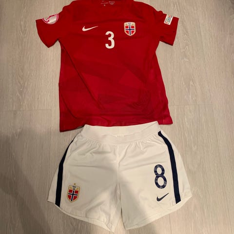 Nike Norge fotballdrakt med Dri-Fit-materiale i rød farge. Kortermet trøye med Norges landslagslogo på brystet og Nike-logo på motsatt side. Laget i pustende teknisk stoff som transporterer fuktighet bort fra kroppen. Passer til fotball og annen fysisk aktivitet, samt som supportereffekter ved kamper og arrangementer.