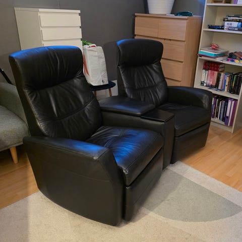 Selger to gode sofaer som har vært i bruk i hjemmekinoen vår.