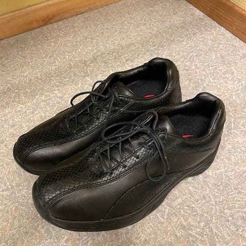 Dressko/pensko i størrelse 40 selges. Klassiske svarte sko med snøring og avrundet tupp. Yttersåle i gummi med lav hæl. Egnet som formelle sko til hverdagsbruk, jobb eller penere anledninger.
