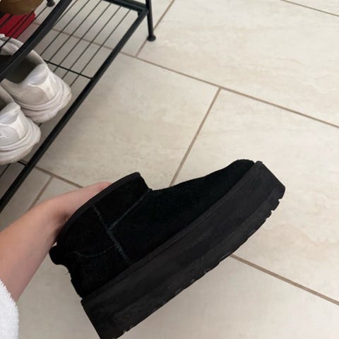 UGG vinterstøvler i størrelse 40. Støvlene er laget i semsket skinn med mykt, pelsfôret innside og detalj bak på hælen. Fargen fremstår som rosa/lyserosa. Sålen er kraftig med mønster for bedre grep. Passer som varme og komfortable vinterstøvler til hverdagsbruk.