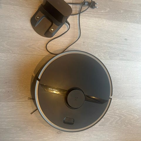 Roborock robotstøvsuger i hvit farge. Modell S502. Denne er svært godt brukt, men virker som den skal.