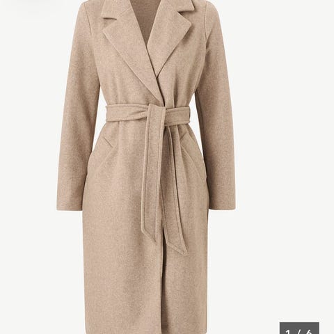 Nydelig kåpe i beiige farge kåpen er laget av 72% 8%kashmir og 20%polyamid kåpen er stor i størrelse så passer fint til Xlarge. Den er lite og pent brukt.