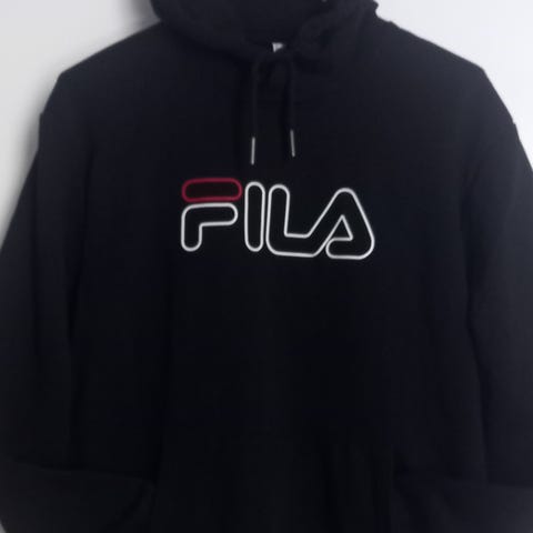 FILA hettegenser i svart/grå med stor logo på brystet.
