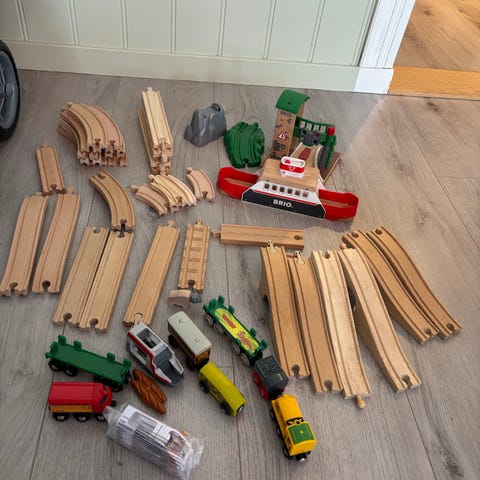 Togskinner i tre fra ikea selges. Nesten kompatible med brio togskinner, men ikke helt 😅