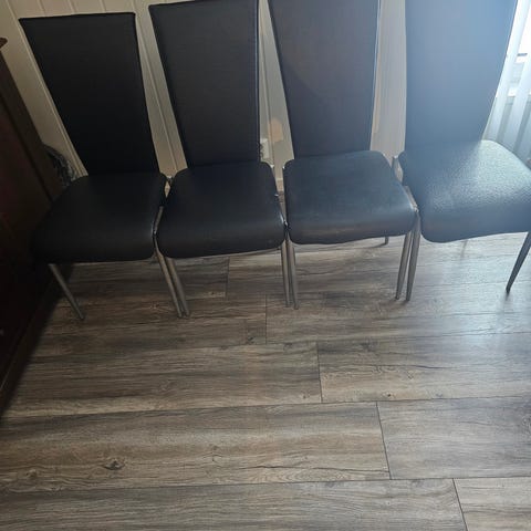 Spisestoler i imitert skinn. 5 stk. synlige bruksmerker. 150 pr stk.